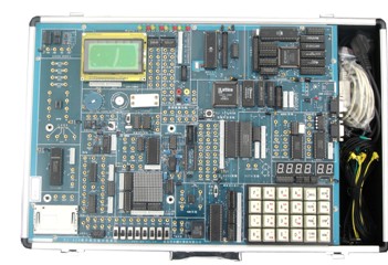 开放式4*6键盘/六位数码管动态显示电路;由16*2(或128*64)组成的LCD图文实验电路;16*16点阵电路; 8250、8251、8253、8255、8279、0809、0832、244/273、RS232/485、IC卡等常用芯片接口电路;小型直流电机、步进电机、继电器、温度压力、电子音响电路喇叭、8MHZ频率源模块、开关逻辑电平输入、输出电路,ISP在线下载电路等。